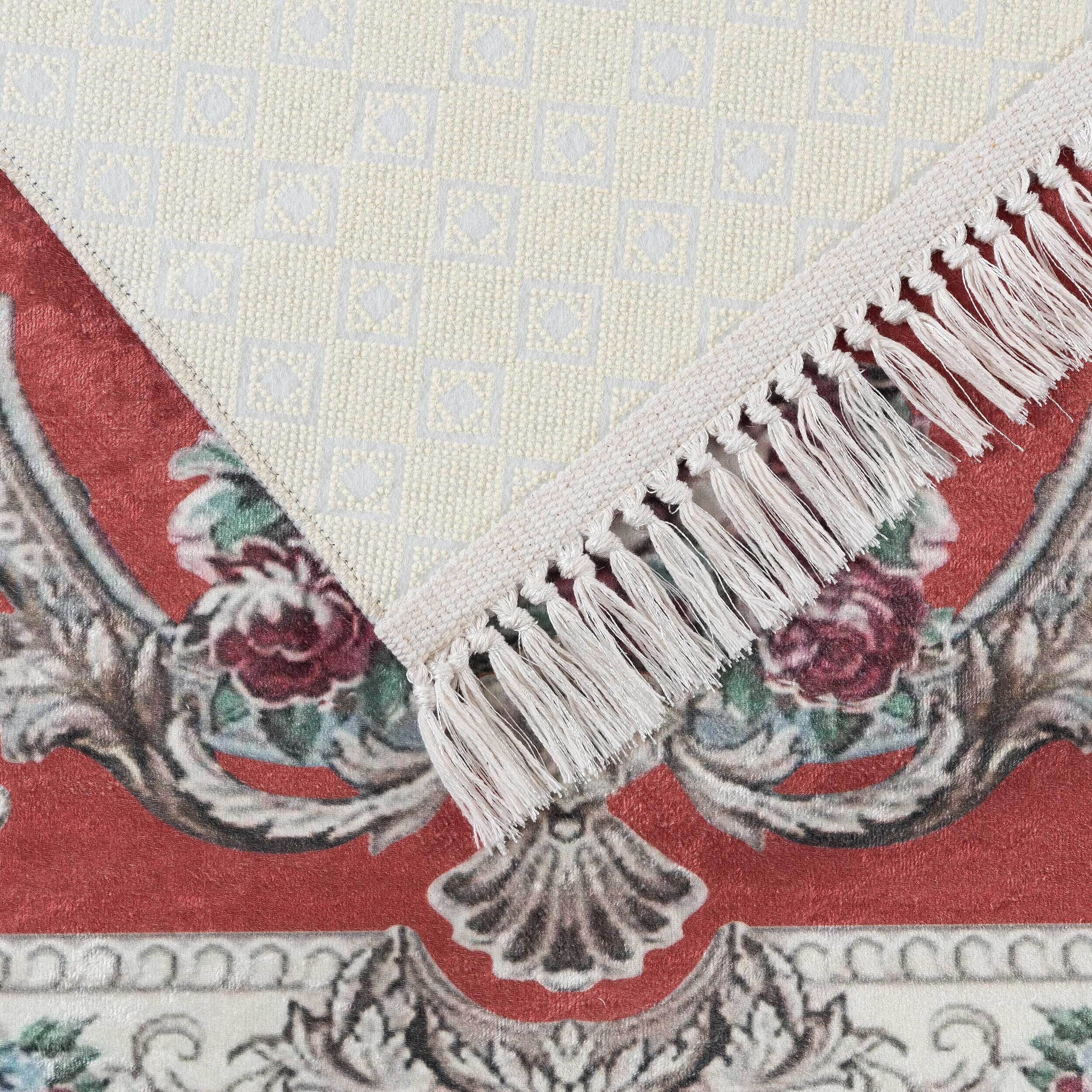 %100 pamuklu, kaymaz tabanı bulunur. Böylece laminat, parke veya fayans gibi zeminlerde tutunma sağlar. Bu özellik aynı zamanda halılarımızın uzun ömürlü kullanılmasını destekler. Muhteşem katlanmış kenar kesimi estetik görünümünü mükemmel bir şekilde tamamlar.